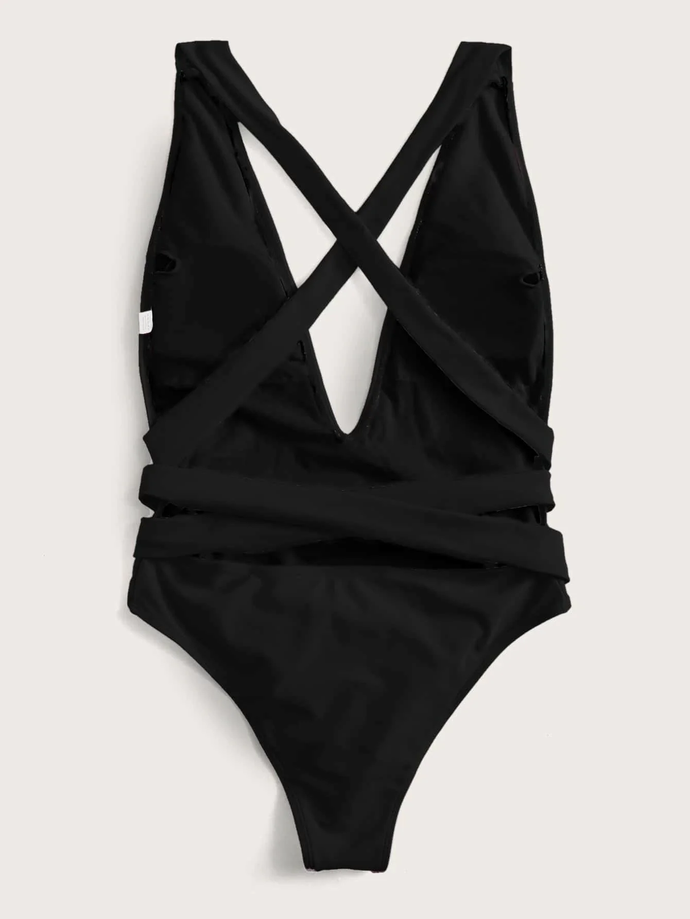 Lieжирский слитный купальник с V-образным вырезом, женский сексуаль...