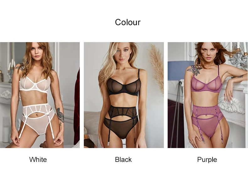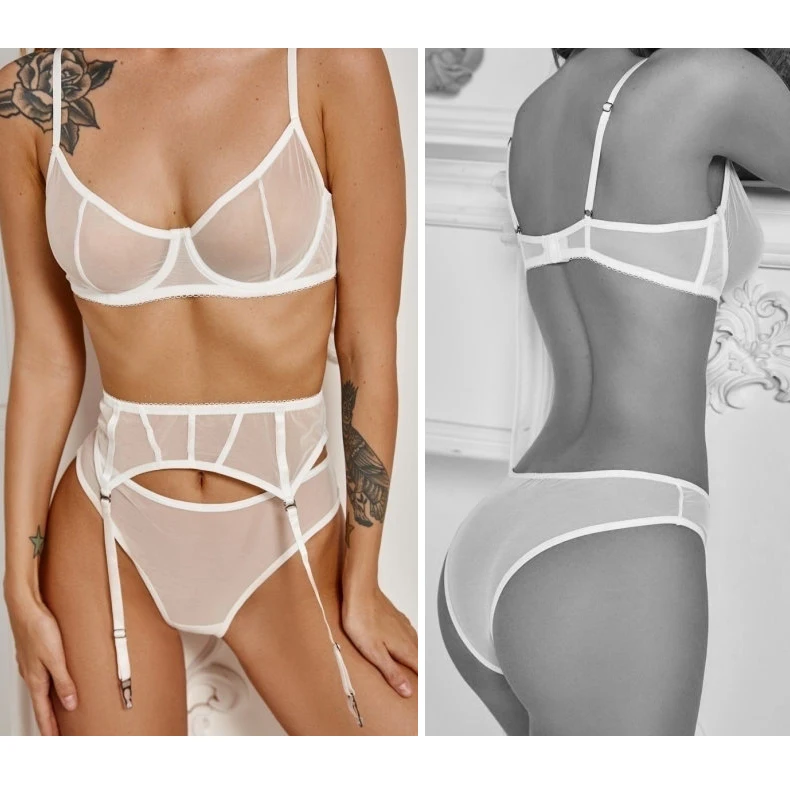 3 шт., чувственное нижнее белье, подвязка, комплект, Прозрачное нижнее белье, женские короткие комплекты, пуш-ап бюстгальтер, прозрачные бюстгальтеры, нижнее белье