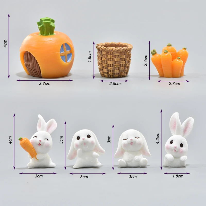 7 шт.компл., модель кролика, фигурка мультяшного животного, кукольный домик, миниатюрное сказочное украшение для сада, форма из смолы, пасхальное настольное ремесло
