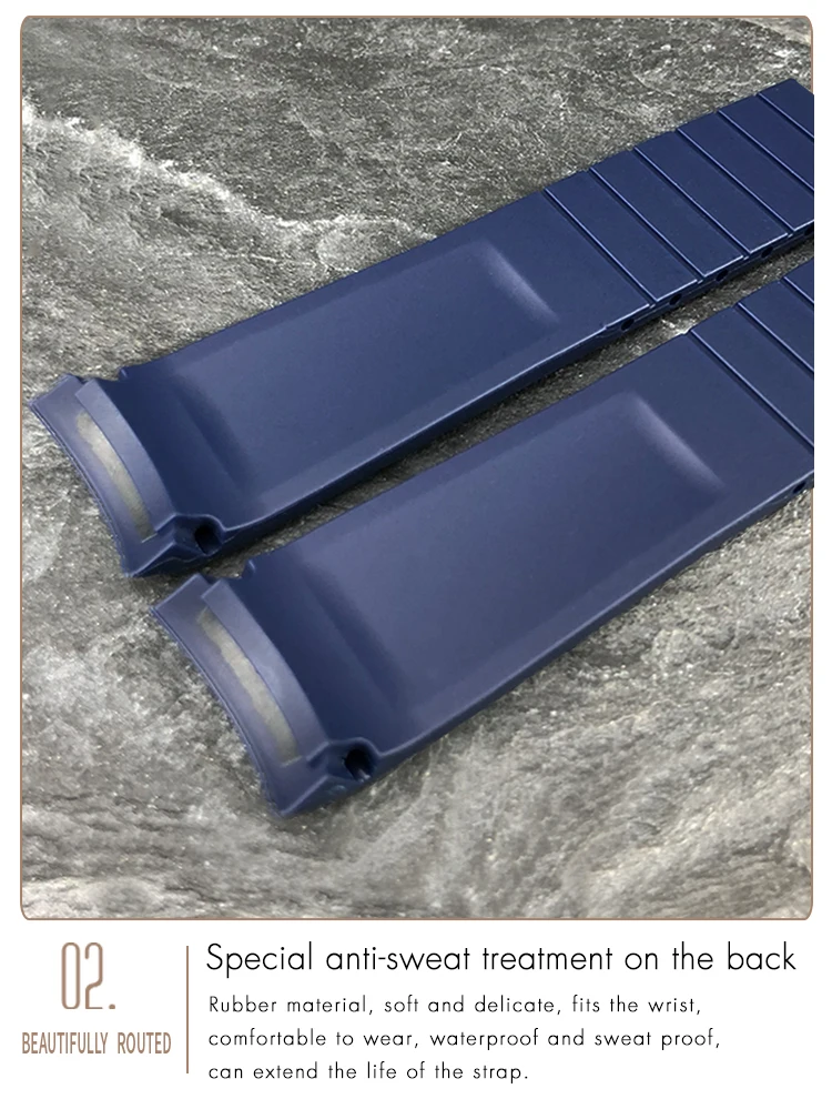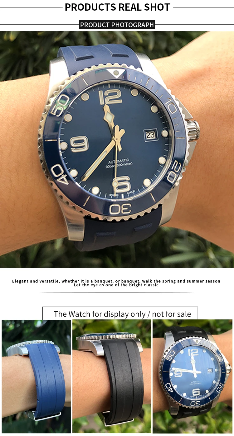 Ремешок резиновый Waterpoof со складной пряжкой для часов Longines ...