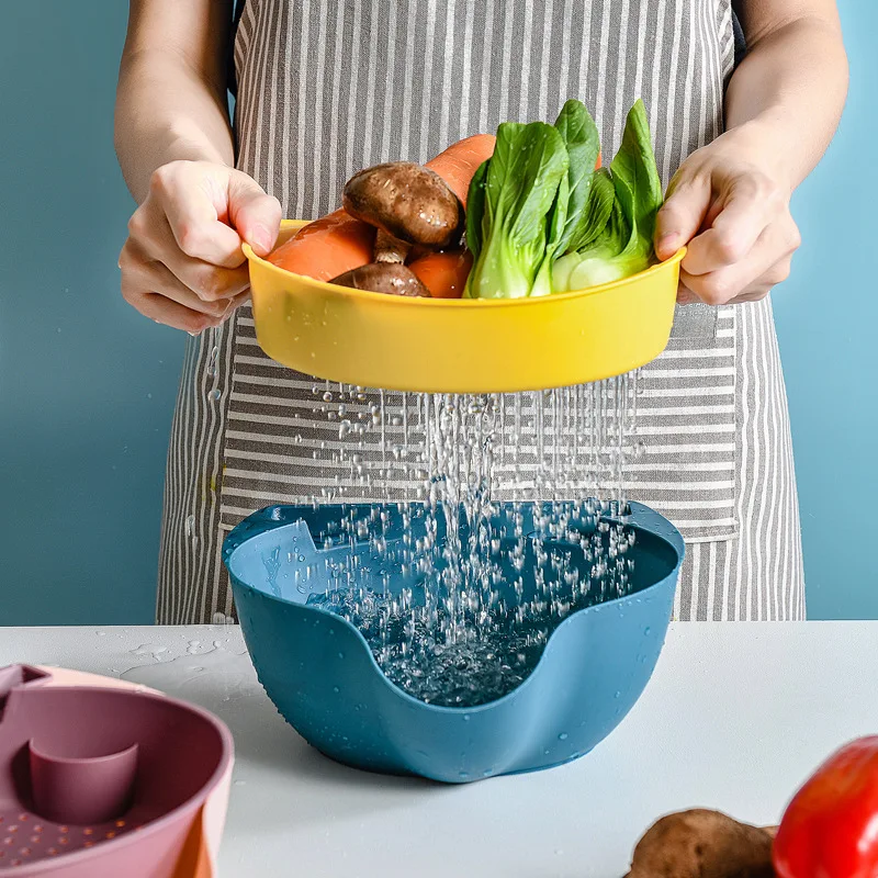 Пластиковая двухслойная миска для закусок, контейнер для хранения фруктов, миска с держателем, приспособление для закусок