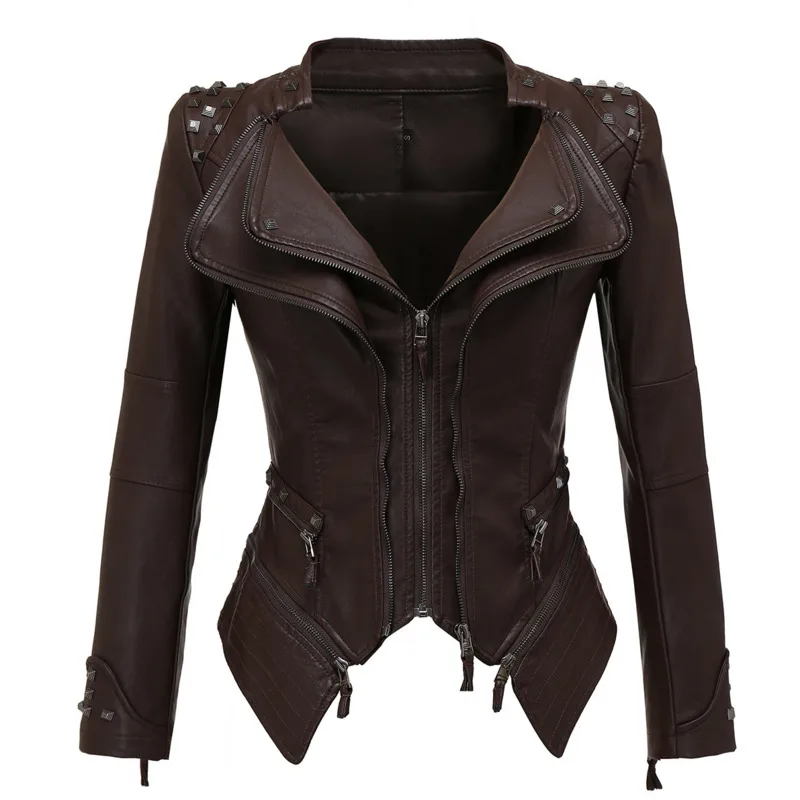Женская мотоциклетная куртка из искусственной кожи, черная куртка из искусственной кожи, верхняя одежда в готическом стиле, Осень-зима 2021