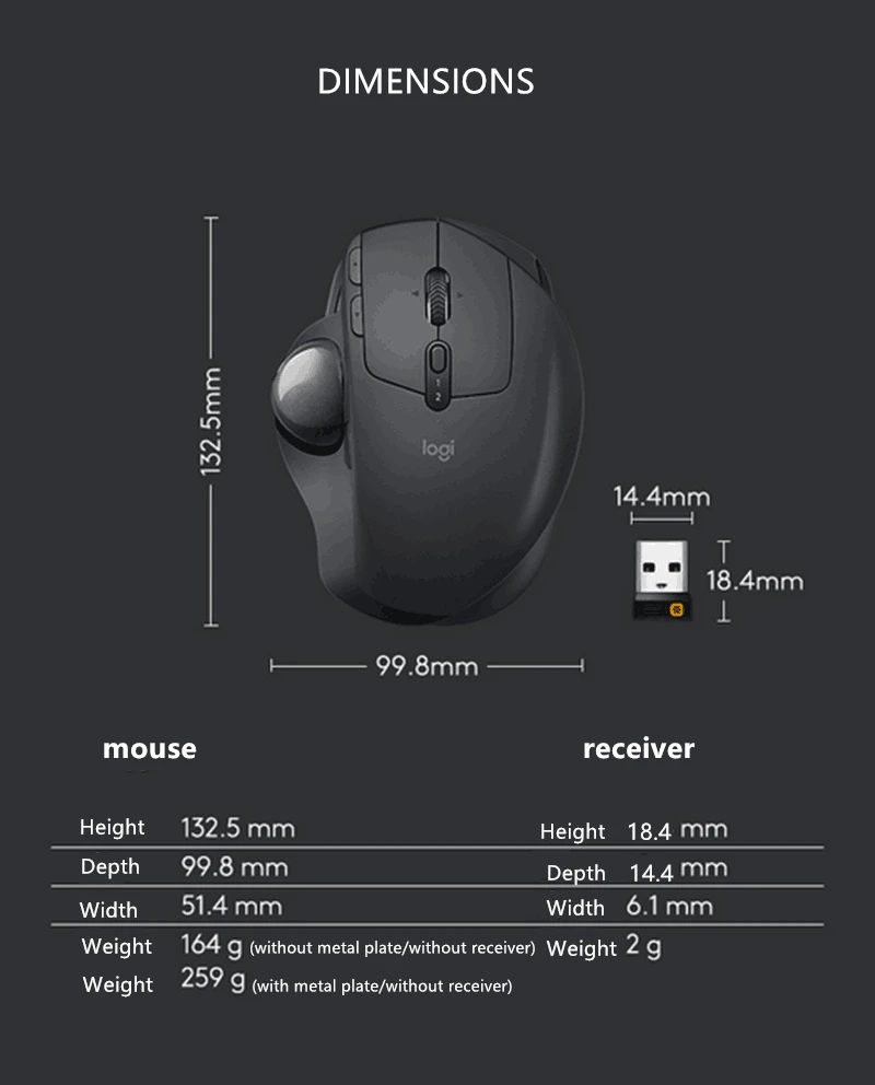 Мышь Logitech MX ERGO беспроводная, 2,4 ГГц, Bluetooth