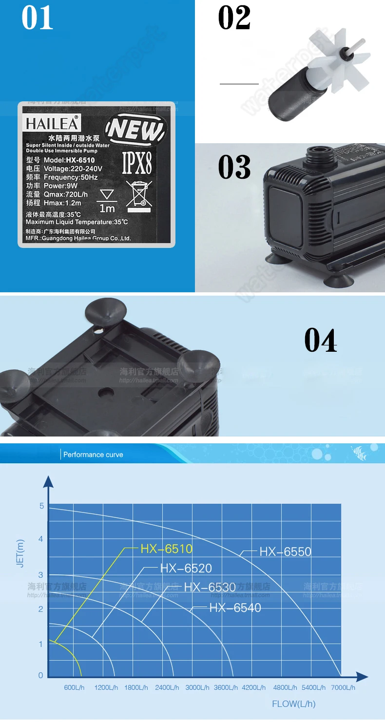 Hailea HX Серии Погружные, амфибии насосы тихий высокий подъем аквариумные насосы аквариум фильтрации циркуляционные насосы