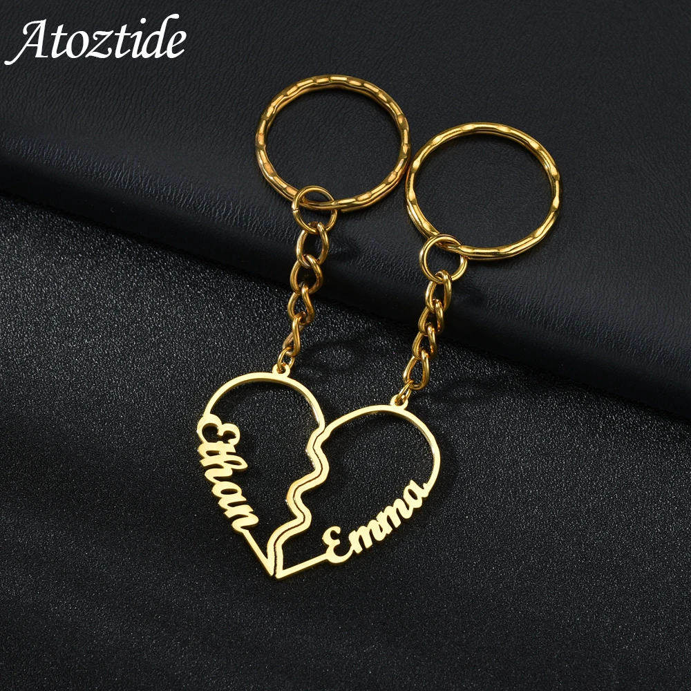 Atoztide Индивидуальный Половина сердца имя пары брелок 1 пара золото нержавеющая сталь для женщин мужчин свадебные ювелирные изделия Рождественский подарок