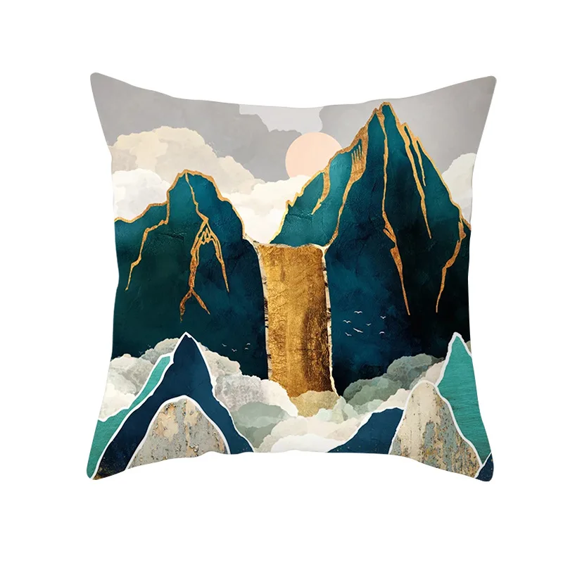 Чехол для подушки с японским абстрактным ландшафтом s 45x45, геометрический персиковый чехол из кожи с принтом, домашний текстиль, чехол для подушки, искусственная Обложка
