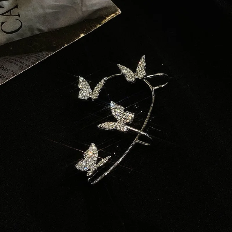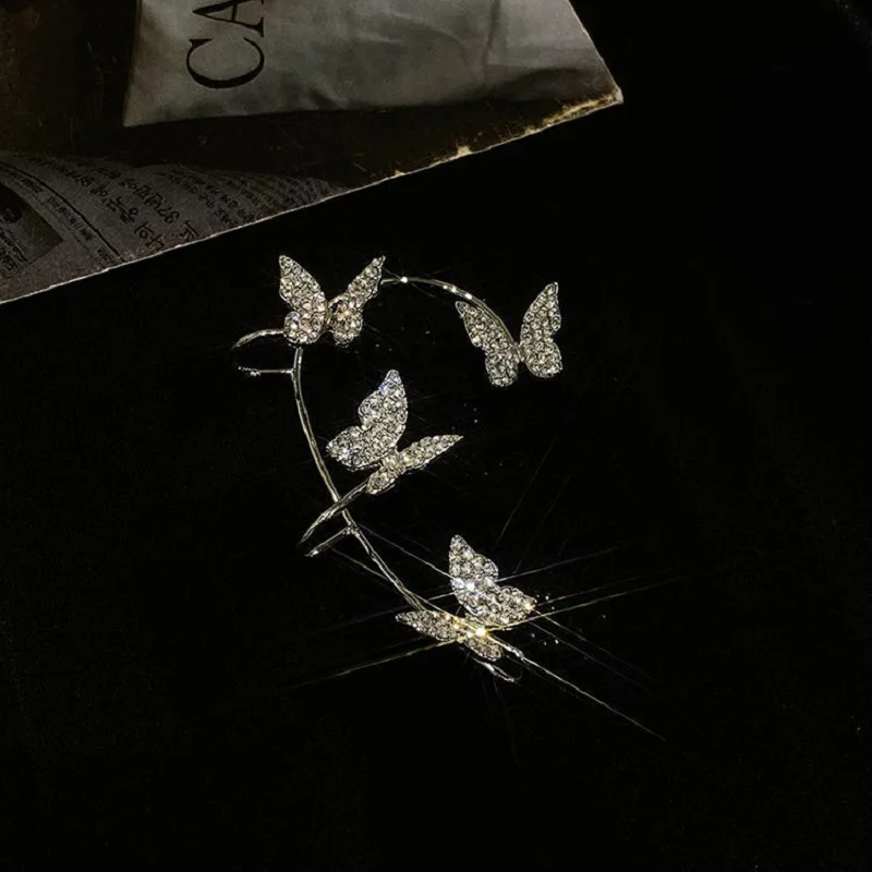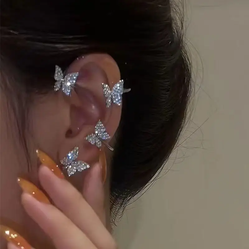 Новые блестящие циркониевые Клипсы-бабочки для ушей для женщин и девушек, модные серьги-каффы для ушей без пирсинга, крючки для ушей, ювелирные изделия для вечеринки и свадьбы, подарок