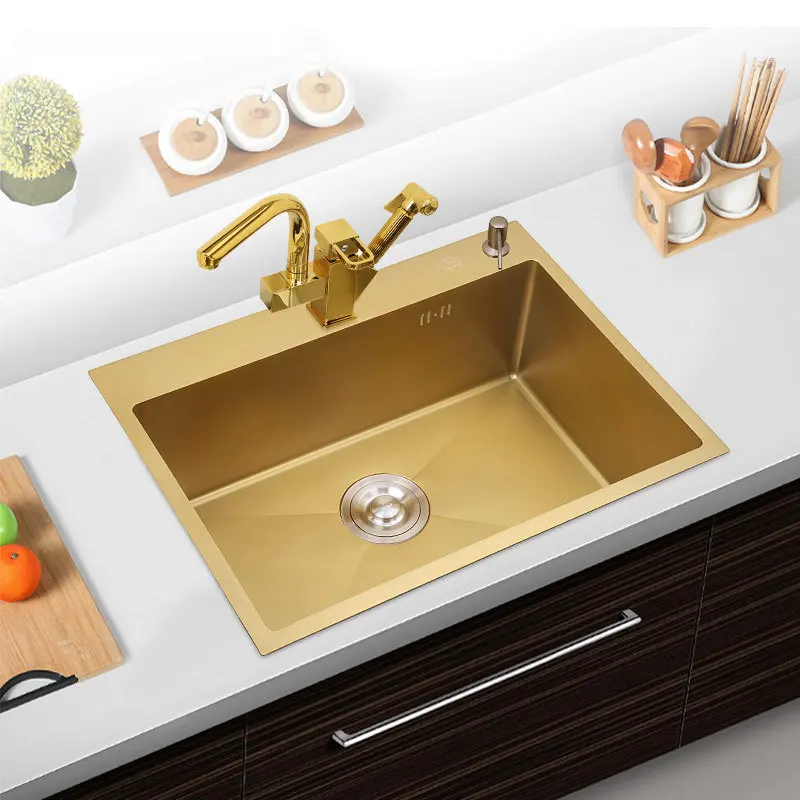 Золотая кухонная раковина из нержавеющей стали 304, одна чаша, встр...