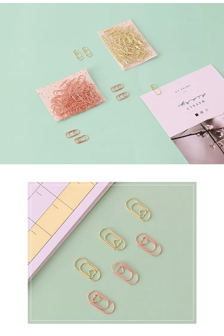 Зажим для бумаги в форме сердца, золотого и розового цветов, 50 цветов