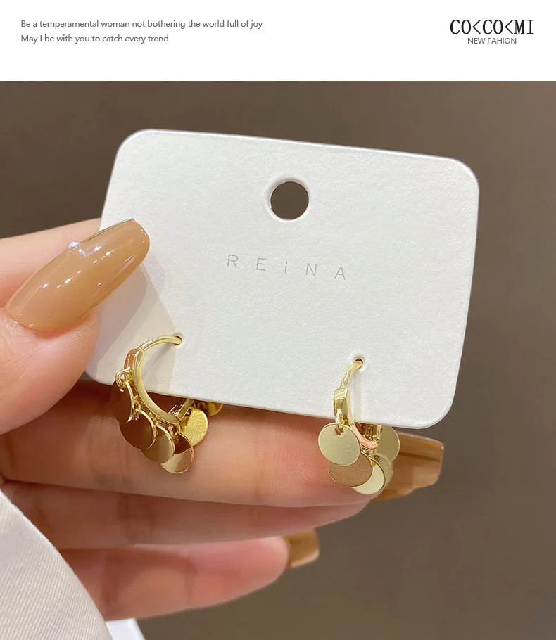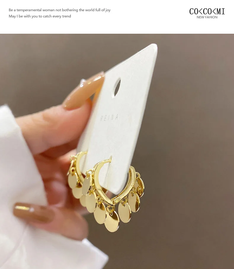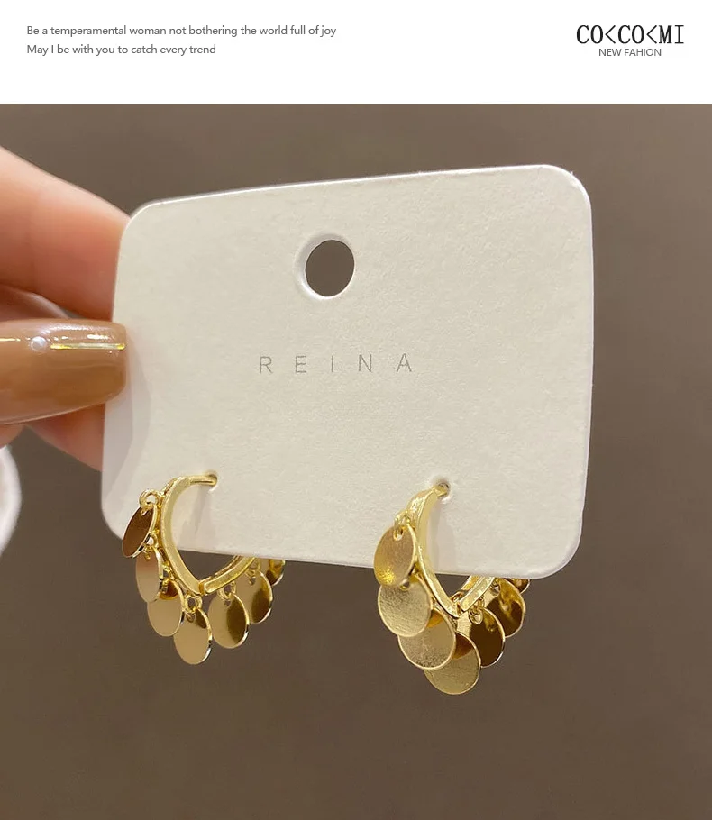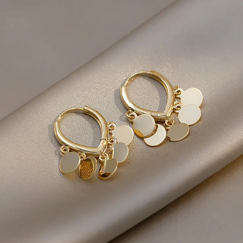 Корейские модные легкие Роскошные серьги с металлическими дисками и кисточками для женщин, праздничные Винтажные серьги с пряжкой для ушей, женские серьги, Рождественская бижутерия, подарок