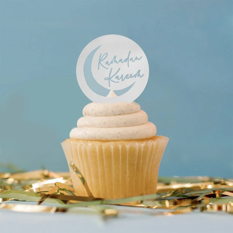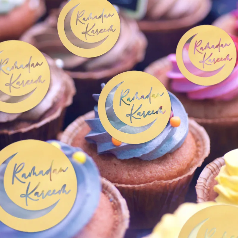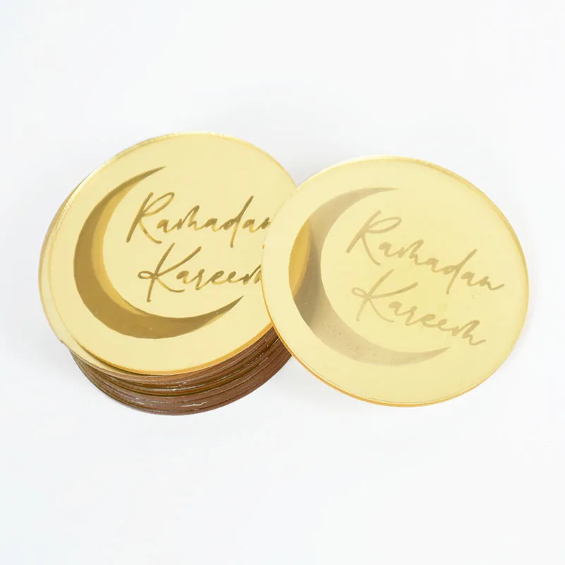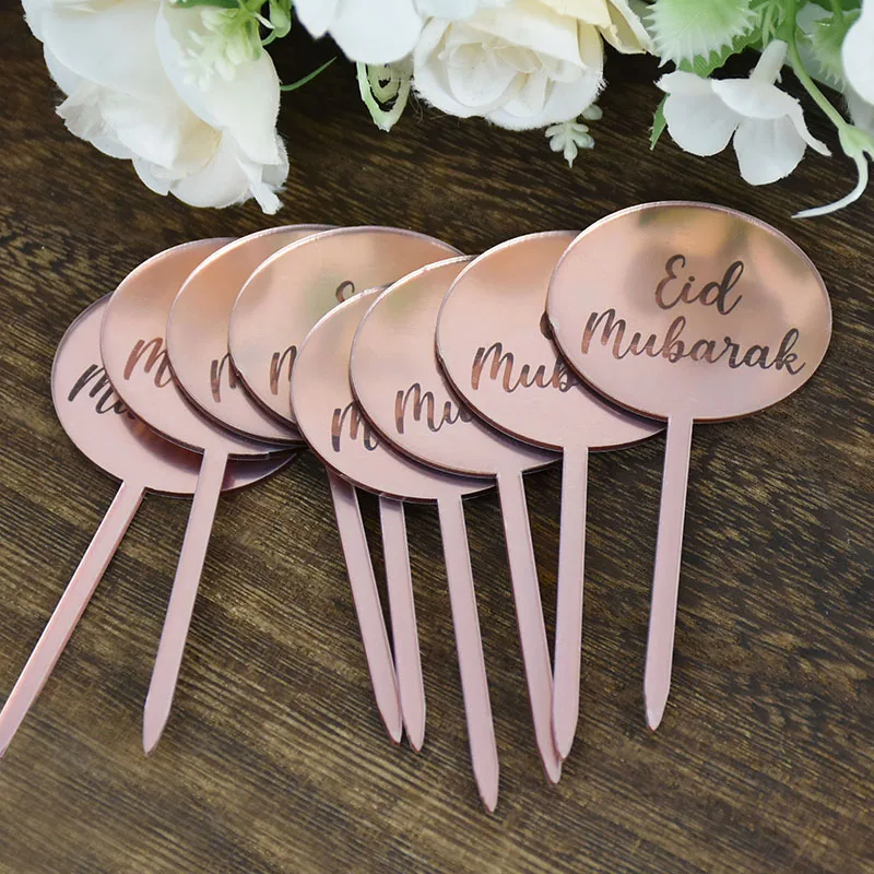 5 шт.лот розовое золото, акриловое круглое украшение для торта Eid Mubarak, десерт, капкейк, Топпер, мусульманский декор для вечеринки, поставка