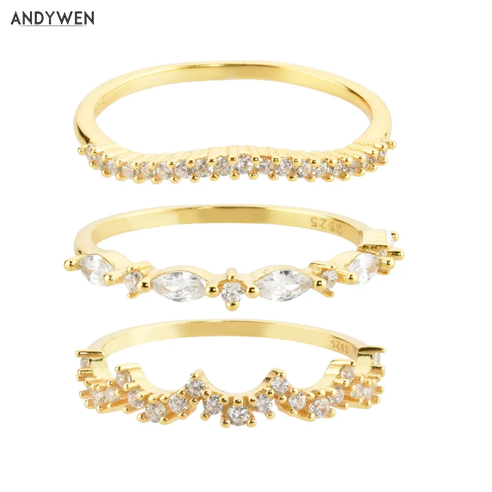 ANDYWEN, Изогнутое Кольцо из стерлингового серебра 925 пробы на заказ, кольца для корсета, 2021, женские роскошные свадебные украшения с фианитами