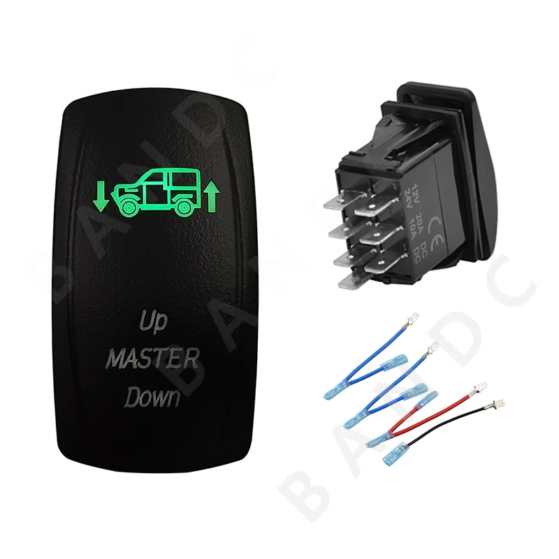 Кулисный переключатель, зеленый светодиод вверх и вниз, вкл.выкл., для тюнинга автомобиля, автобуса, грузовика, автомобиля, 12 В, 20 А, 24 В, 10 А