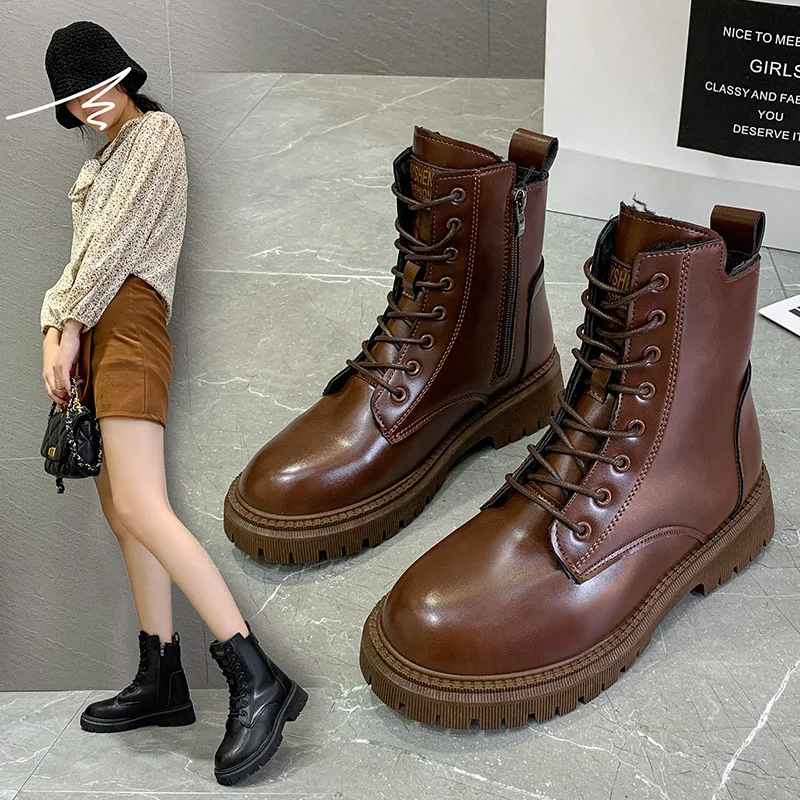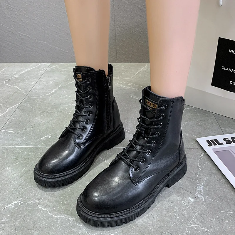 Женские кожаные ботинки до щиколотки, повседневная обувь на осень и зиму, 2021