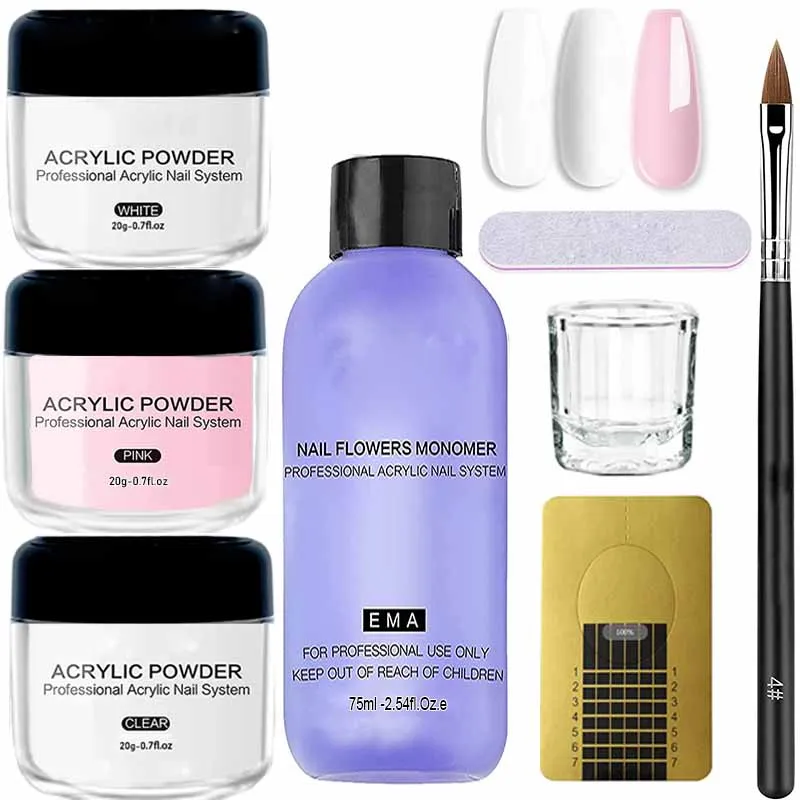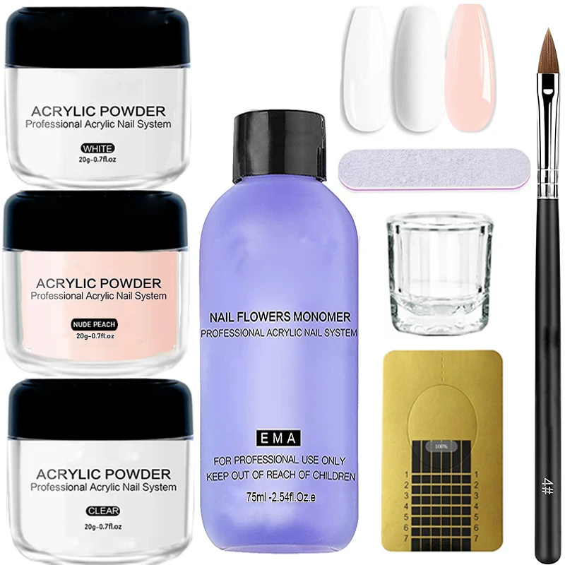 Содержание:1 шт. пилка для ногтей1 бутылка 75 мл fl.oz акриловый жидкий мономер1 банка чистого цвета 20 г полимерный акриловый порошок1 банка белого цвета 20 г полимерный акриловый порошок1 банка розового/телесного/персикового цвета 20 г полимерный акриловый порошок1 штука в пакете из нейлона и акрила, кисть с черной Стразы6 цветов Блестящий Алмазный порошок1 шт. стаканчик для ногтей20 шт. формы для ногтей