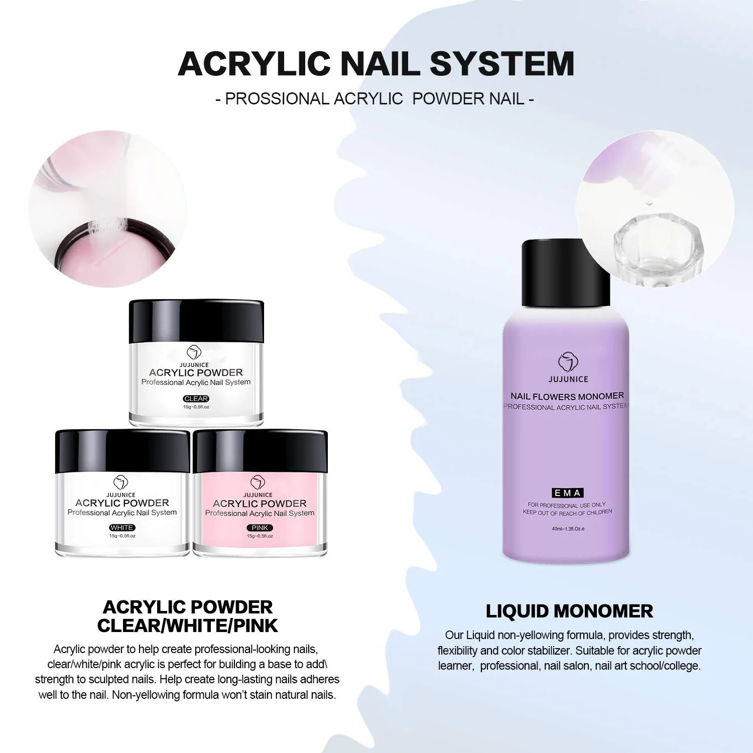 Шаг за шагом:Для чего используется?Это Акриловые пробные наборы для начинающих. Вы можете сделать белые, розовые, прозрачные ногтиТакое же качество с профессиональным в моем магазине.Более профессиональные и вместительные товары могут быть предложены в моем магазине