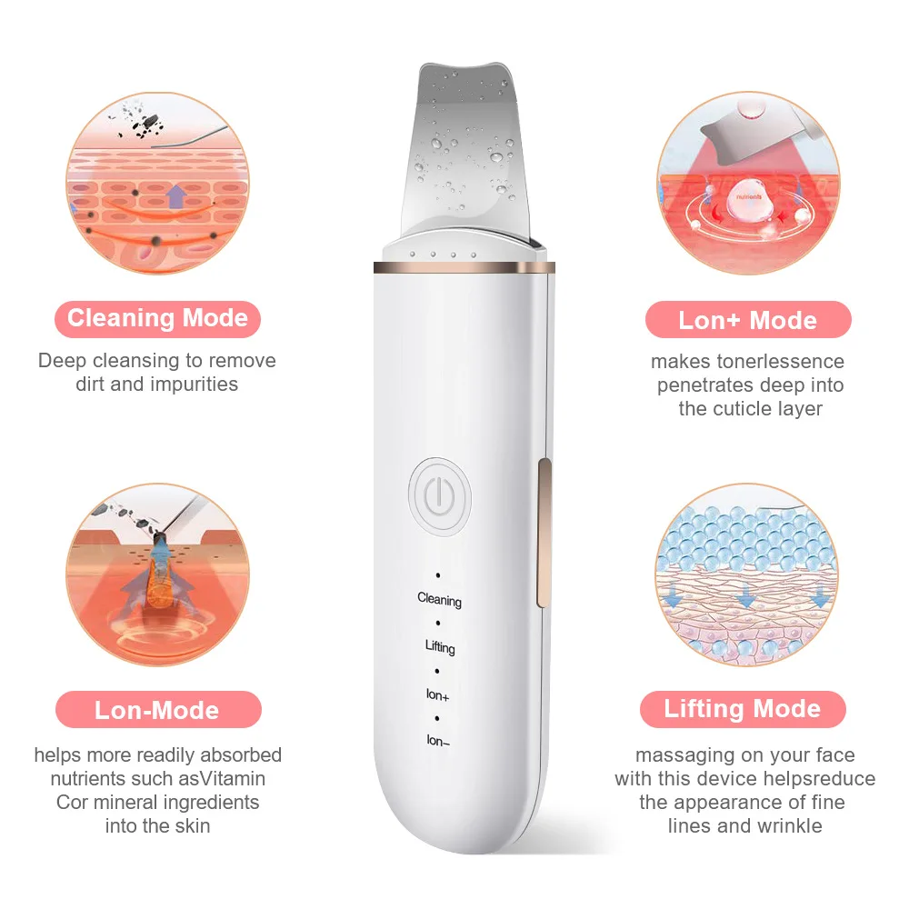 Ультразвуковой скребок, шпатель для глубокой кожи, инструмент для подтяжки лица, очищающее средство для пор, скребок для удаления черных точек и кожи, подтягивающий