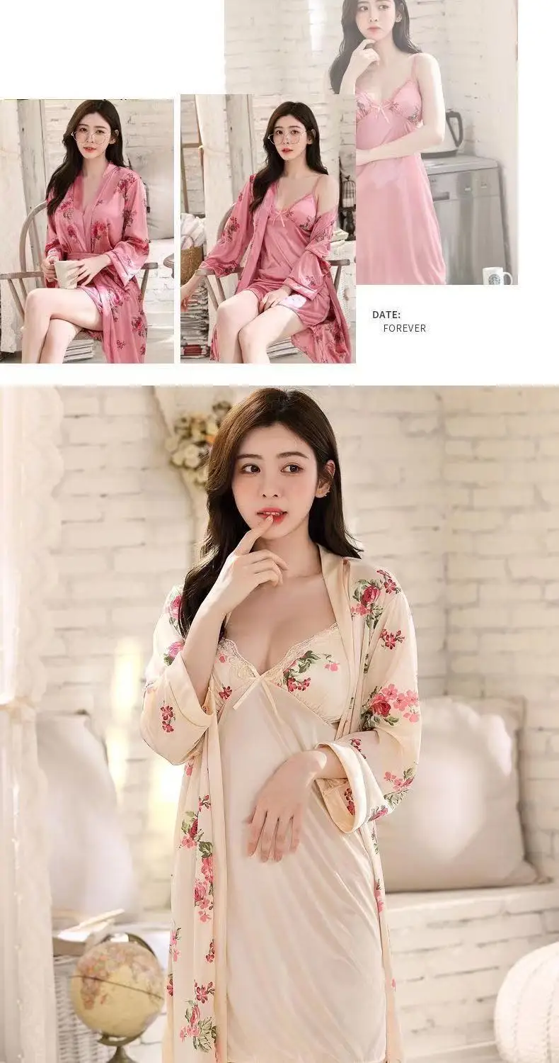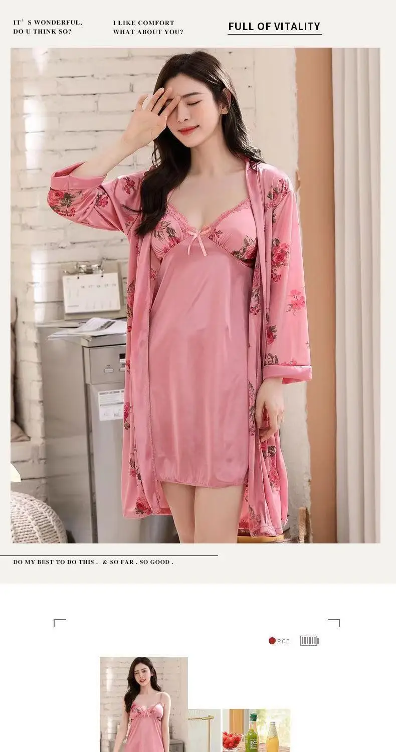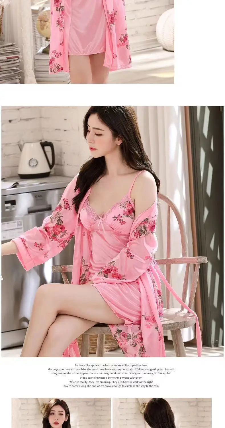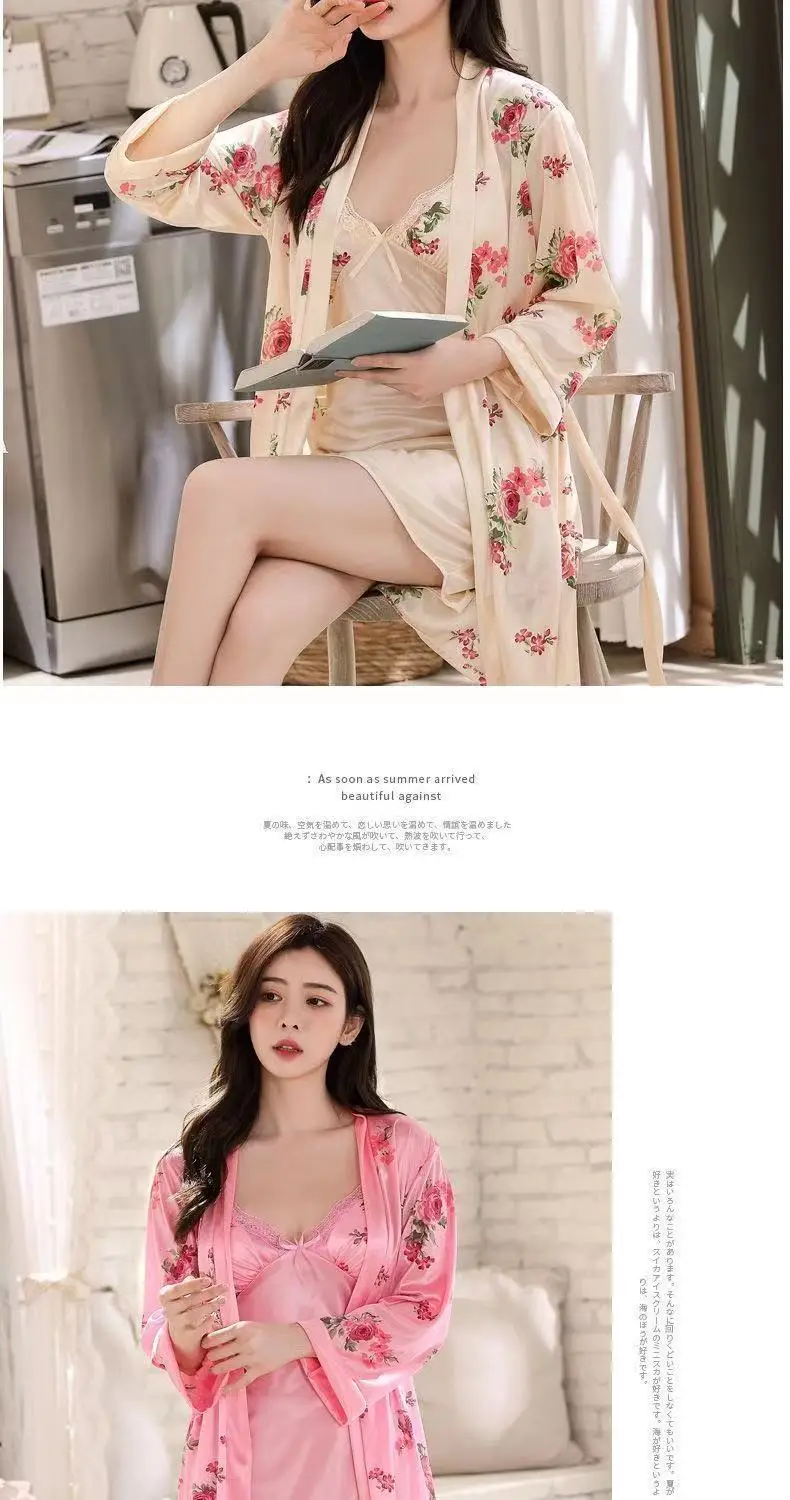 Роскошное женское кимоно, ночная рубашка, 2 шт., халат, шелковая женская ночная рубашка, мягкое интимное нижнее белье, женское платье для вечеринки