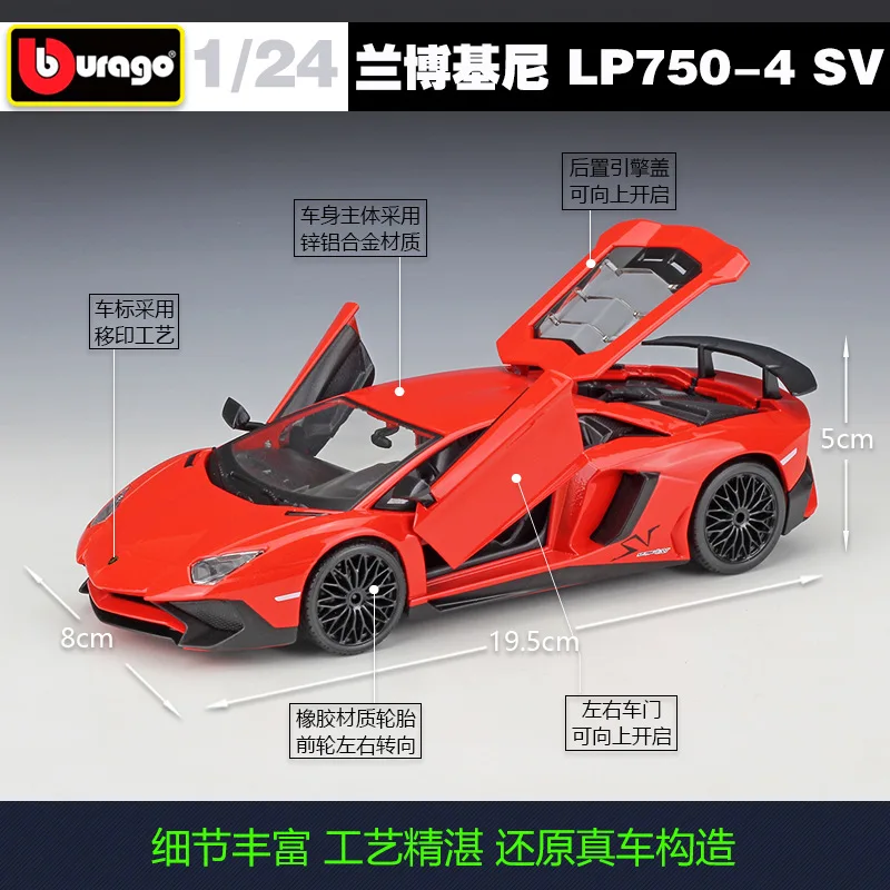 Bburago 1:24 Lamborghini автомобиль, предмет освещения, гоночные автомобили, статическая имитация Красного литая модель автомобиля из сплава, коллекция для взрослых B521