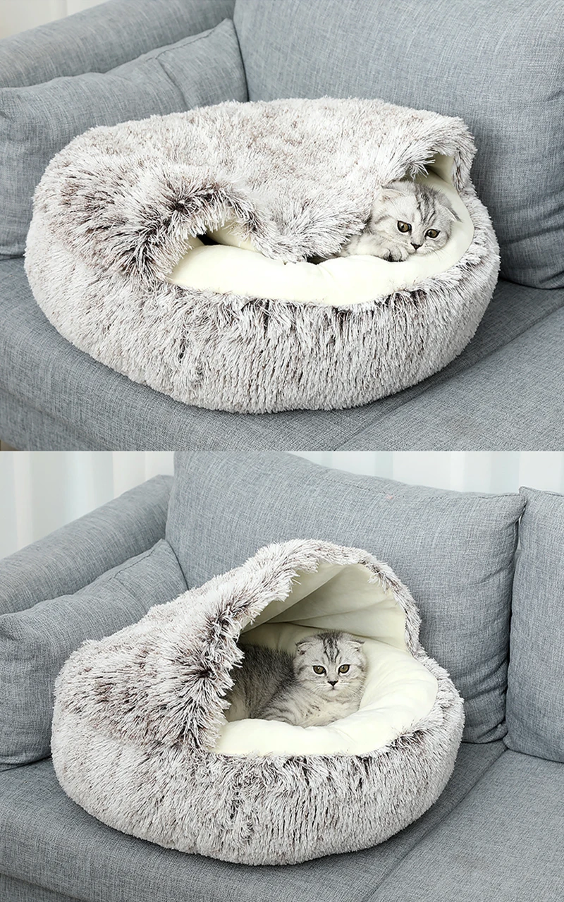 Новинка, зимняя плюшевая подстилка для домашних животных, 2 в 1, корзина для кошек