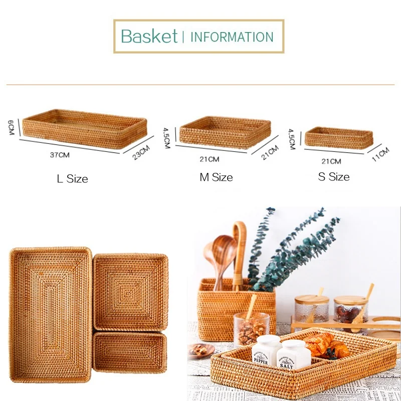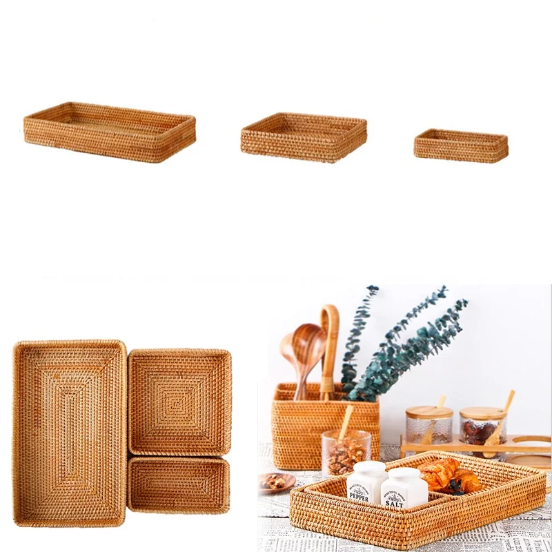 Поднос для хранения вещей ручной работы из ротанга, плетеные корзин...
