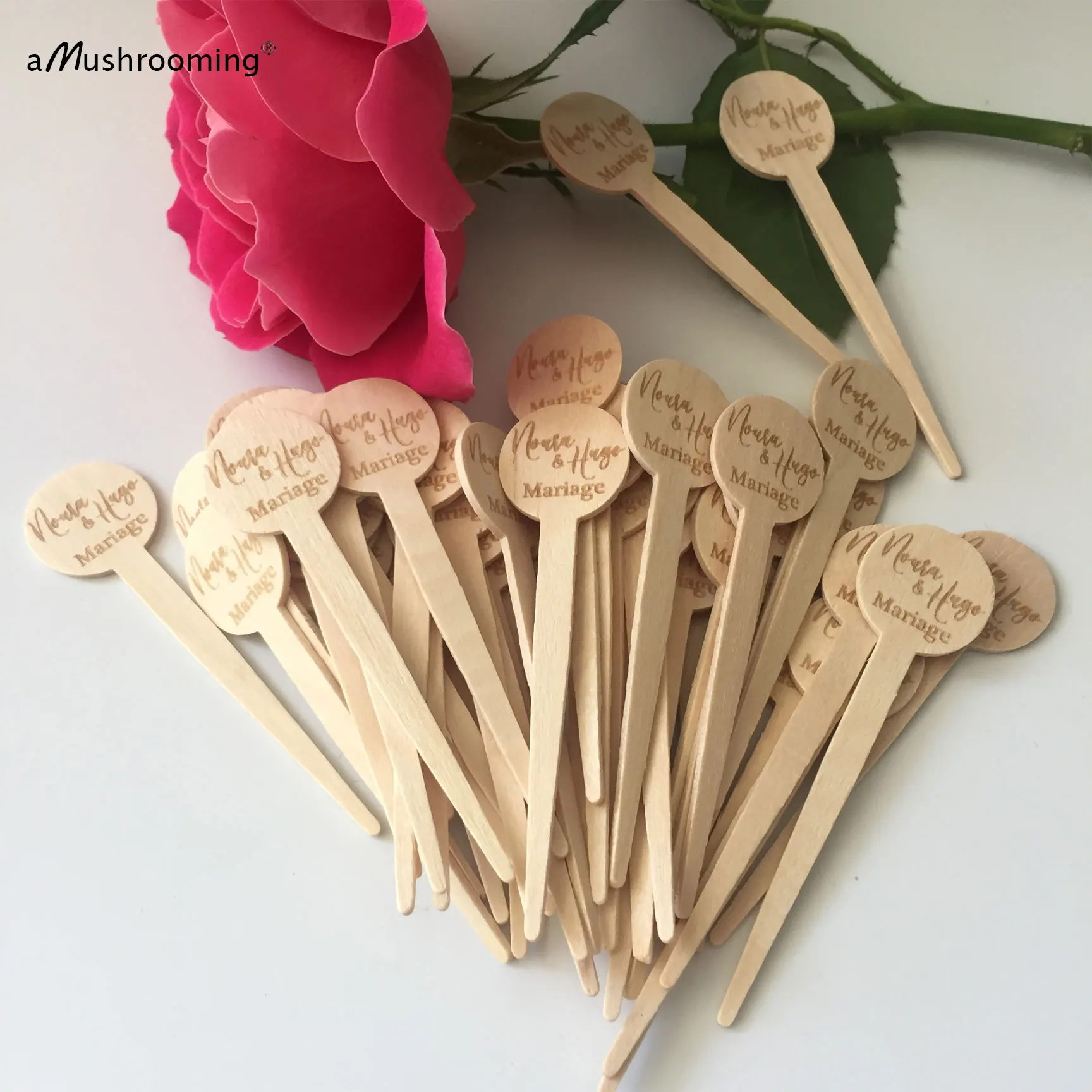 100 шт., деревянные палочки для торта с гравировкой под заказ