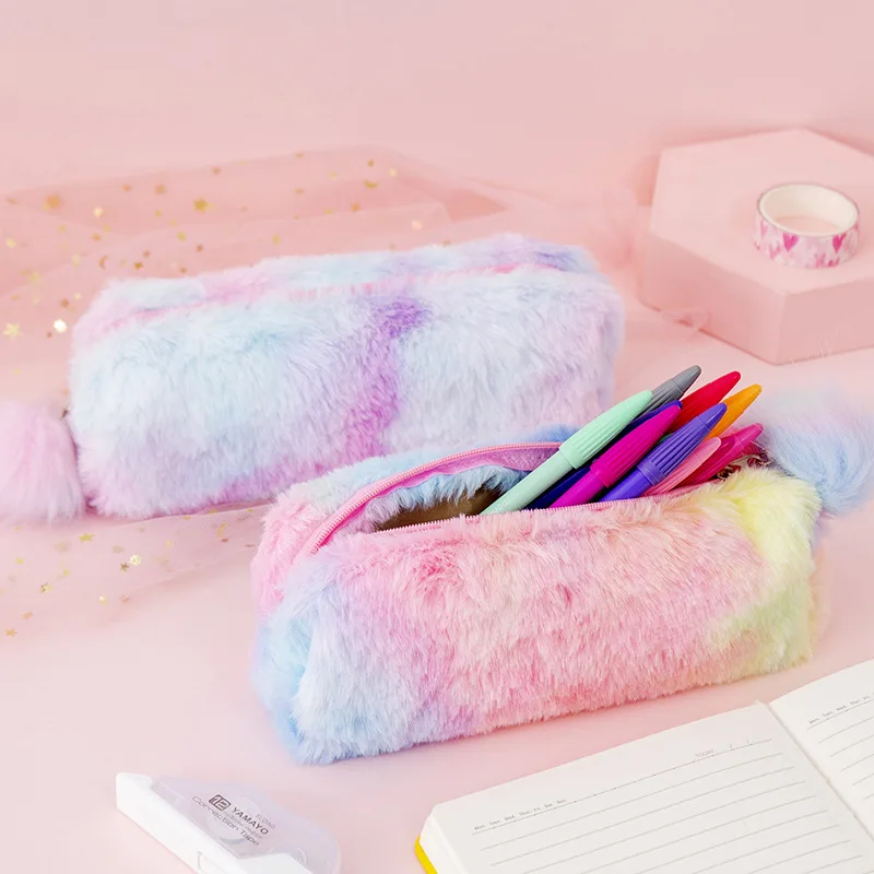 Чехол для карандашей, плюшевый, с градиентным рисунком, для девочек