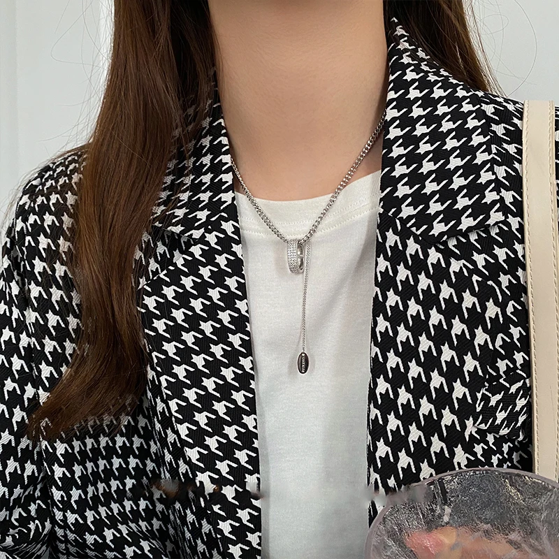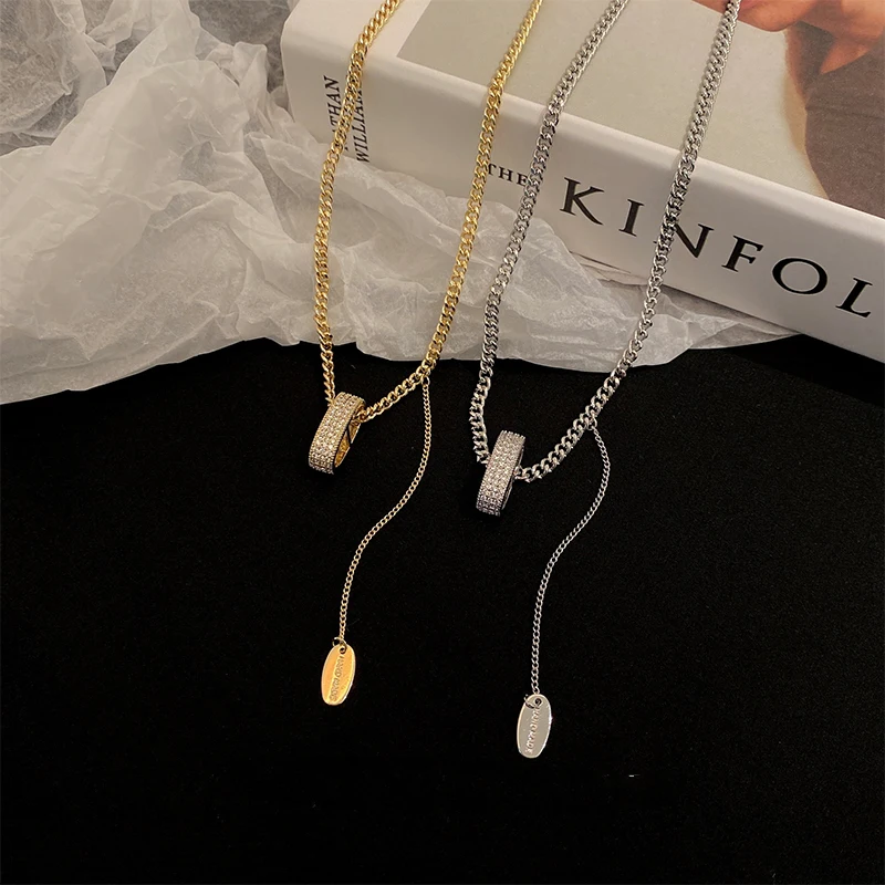 Темпераментный микро-набор Овальный Кулон овальной формы длинное ожерелье модная цепочка для свитера для женщин и девушек ювелирные изделия аксессуары 2021 подарок Вечерние