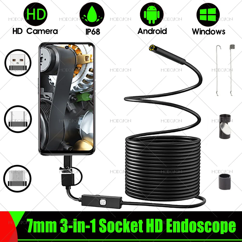 7 мм 3-в-1 HD эндоскоп Камера Mirco Тип USB с портом типа C змея кабель эндоскопии Водонепроницаемый Видеоскоп Android ПК бороскоп