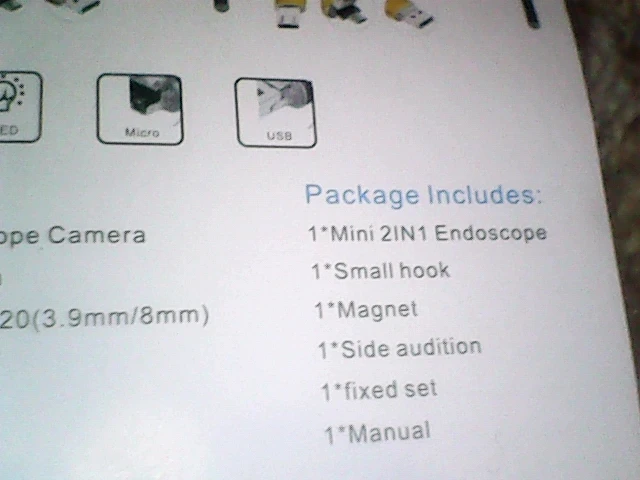 1 * эндоскоп1 * зеркало1 * маленький крючок1 * магнит1 * Руководство пользователя