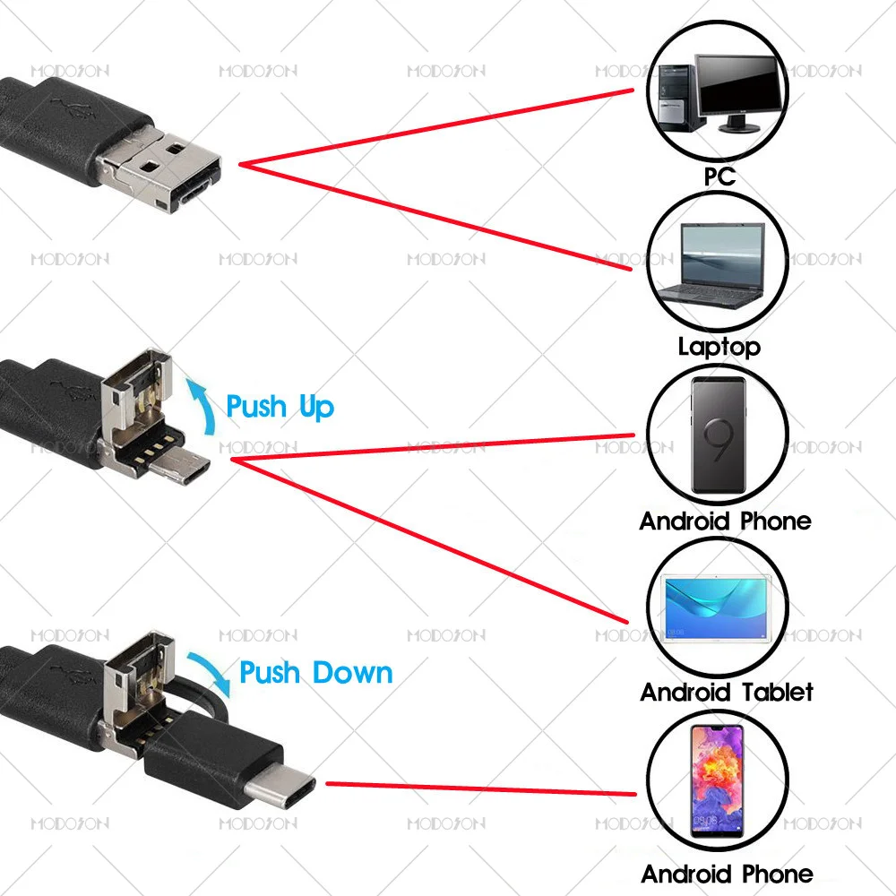 Эндоскоп 3-в-1 с кабелем USB Type-C и микро-USB, 7 мм