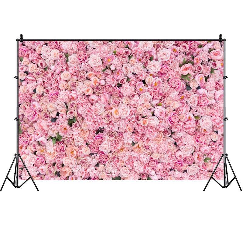 Розовый фон для фотосъемки с изображением роз и цветов