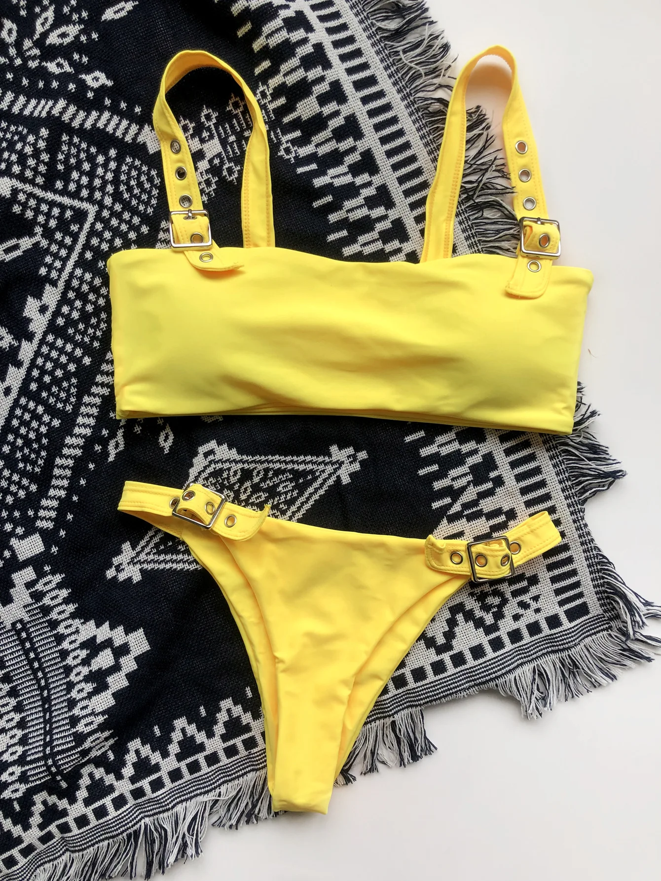 Бикини 2021 сексуальный желтый купальник с регулируемыми дырками и пряжкой купальник женский комплект бикини купальный костюм пляжное Бикини женское пуш-ап