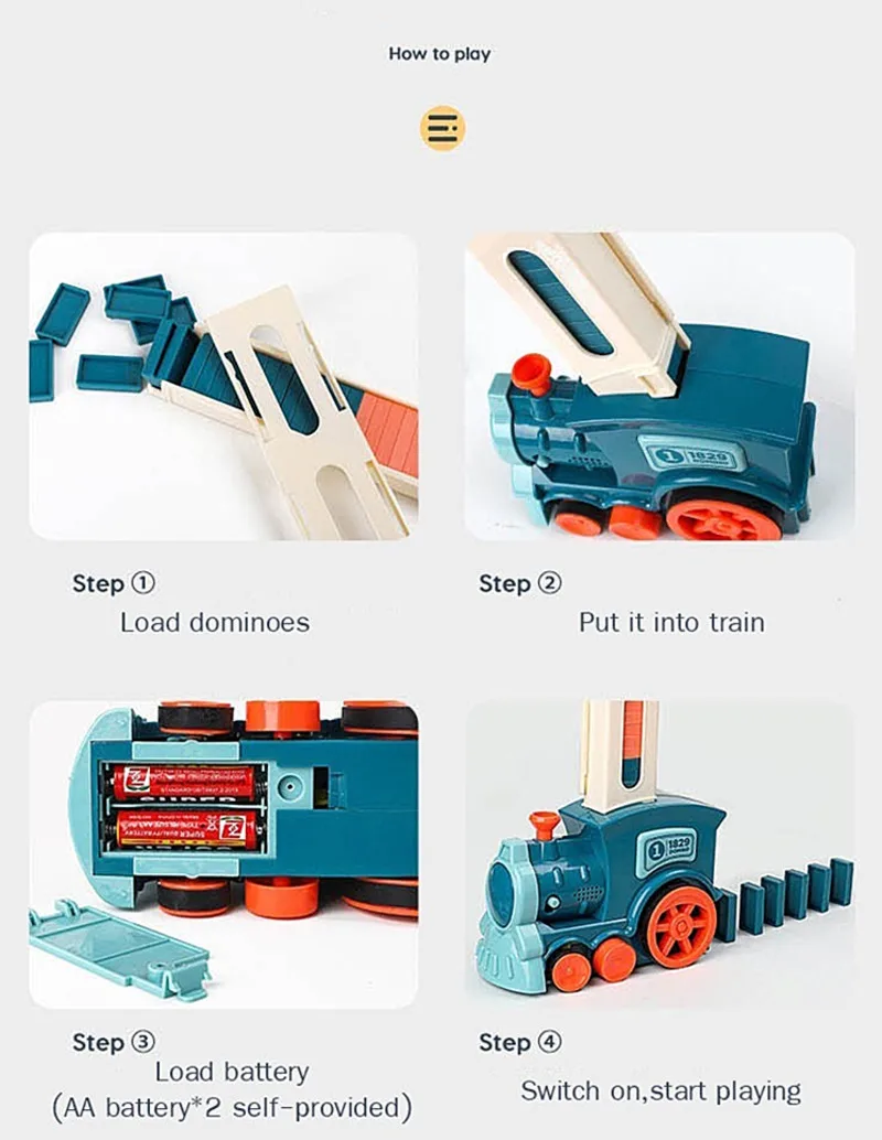 Характеристика:Просто загрузите картридж, Надавив его на домино.Прикрепите картридж к верхней части поезда и включите поезд!Поверните воронку поезда, чтобы повернуть влево и вправо.Когда поезд движется вперед, он будет депонировать стоящее домино подряд.Предупреждение: не подходит для детей в возрасте до 3 лет1. Модный дизайн, 100% новый, высокое качество!2. Материал: АБС-пластик3. Размер: как показано на картинке4. Питание от 2 "AA" батарей (не входят в комплект)5. Товары включают: 60 шт. домино и 1 загрузочный картридж и 1 деревоПожалуйста, обратите внимание!Продукт может иметь проблемы во время длительной транспортировки, пожалуйста, не спешите оценить, мы придаем большое значение проблеме, с которой вы столкнулись. Пожалуйста, сделайте фотографию продукта и свяжитесь с нами для получения дополнительной информации. Мы сделаем все возможное, чтобы помочь решить проблему. Спасибо.