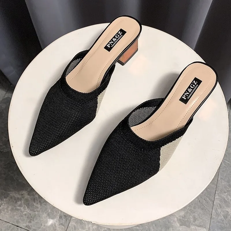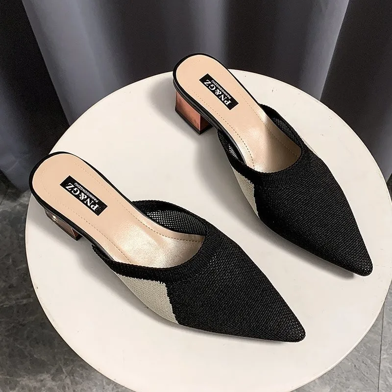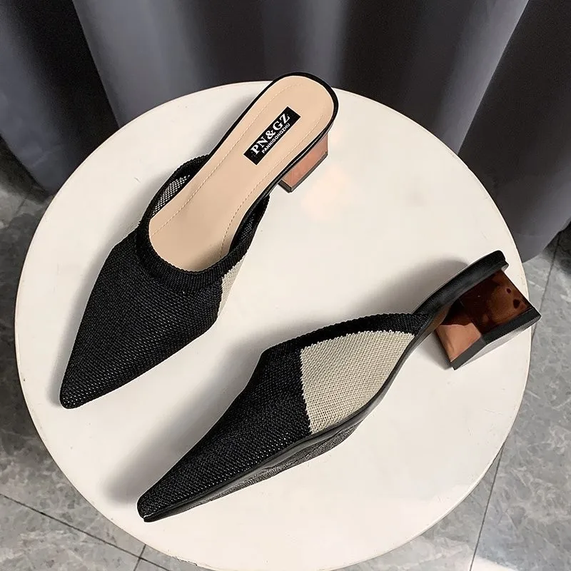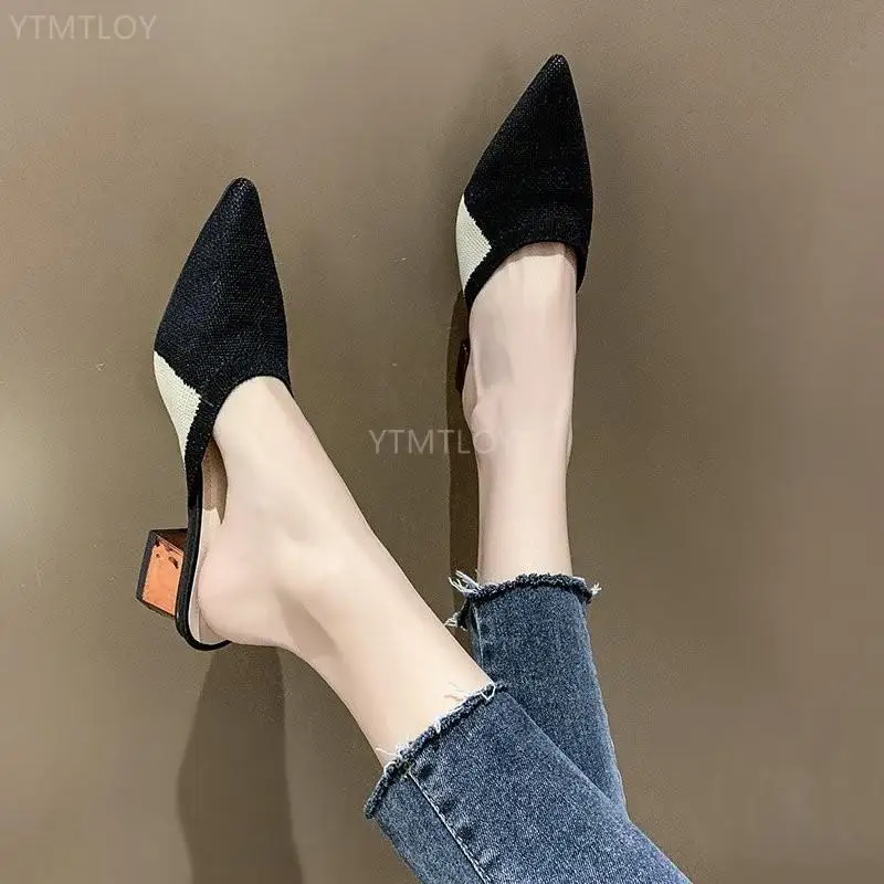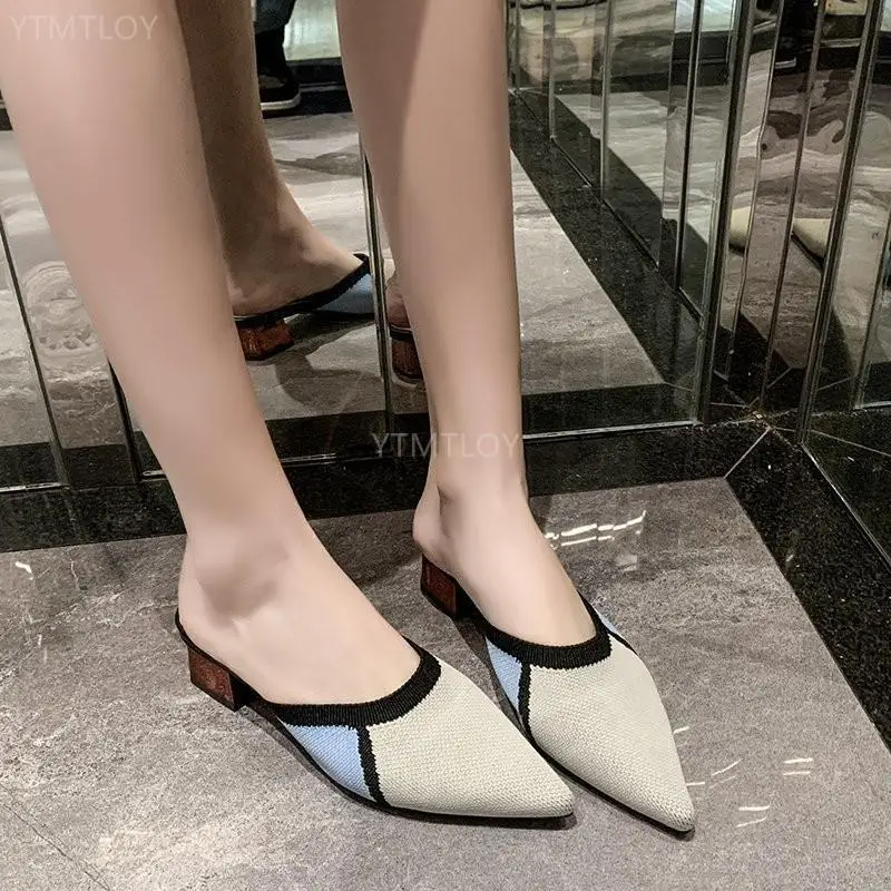 Шлепанцы женские сетчатые, эластичные вязаные, заостренный носок, сланцы, летняя модель 2022