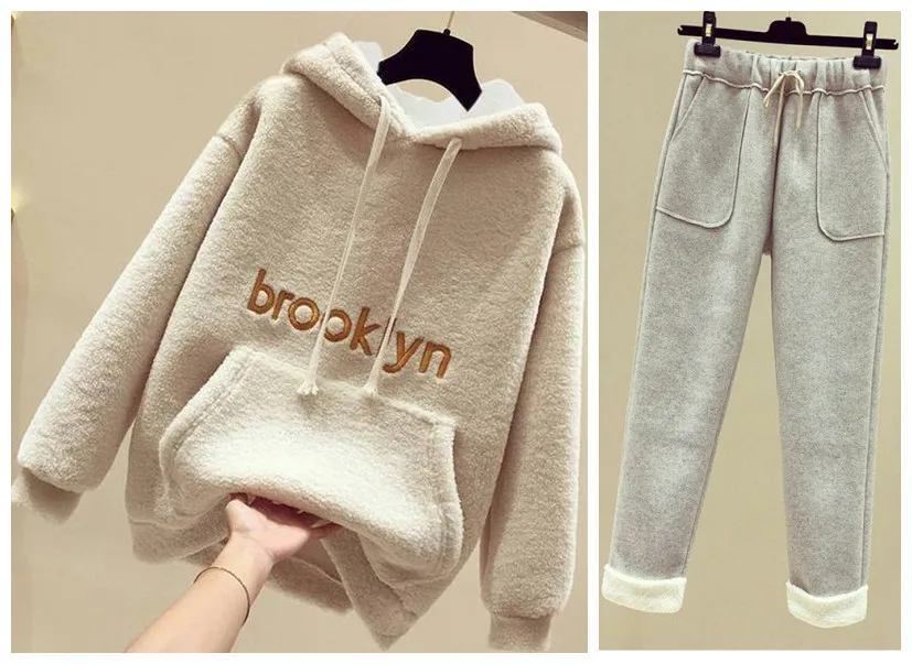 Женский флисовый спортивный костюм с надписью, зимний Повседневный ...