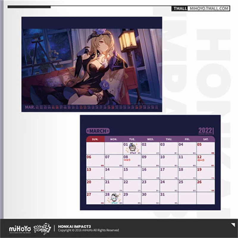 Аниме игра Honkai Impact 3 Косплей индивидуальный 2022 Настольный календарь акриловый материал + деревянная основа рождественские и новогодние подарки