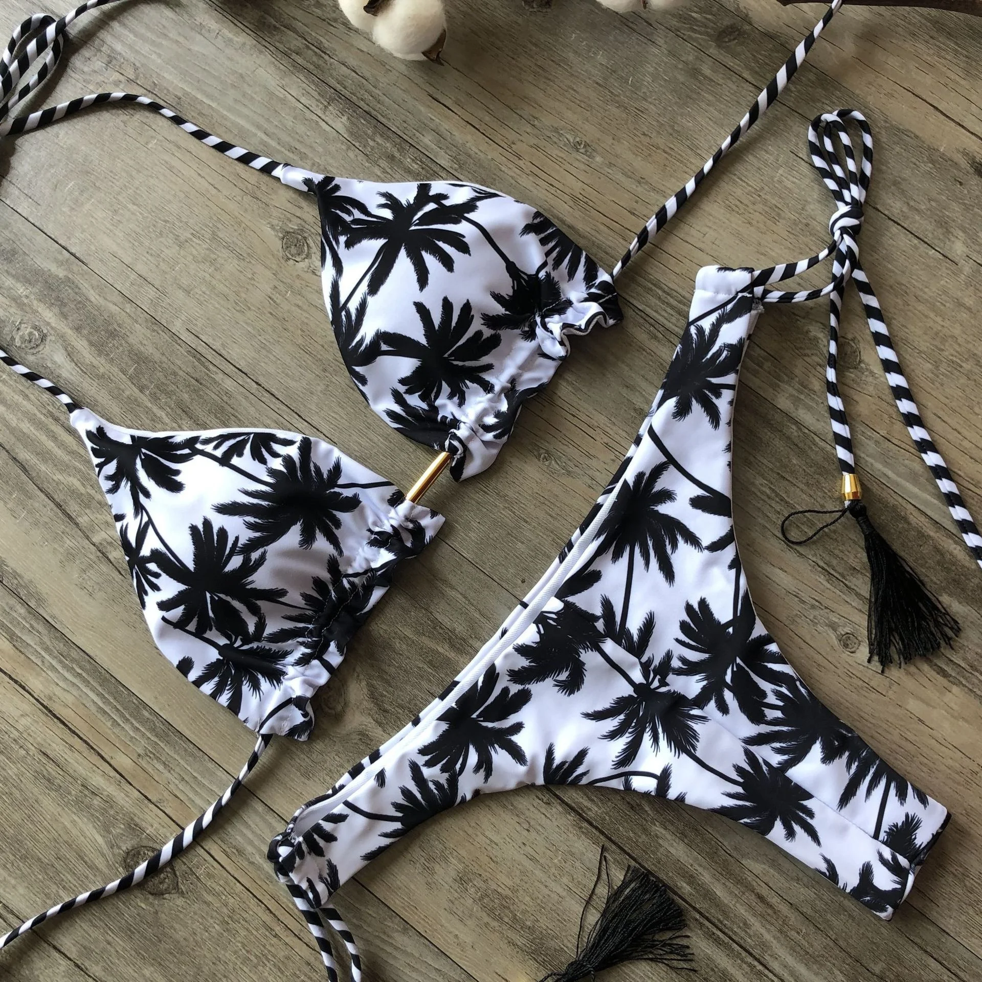2021 купальник с принтом листьев, Бразильское бикини, стринги, купа...