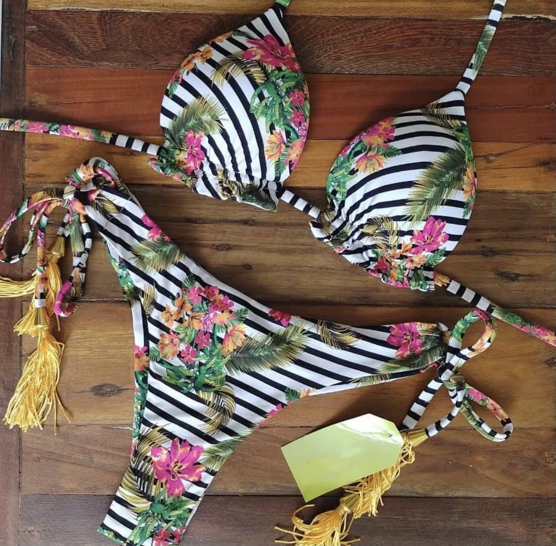 2020 сексуальные бикини с цветочным принтом, полосатый лоскутный ку...