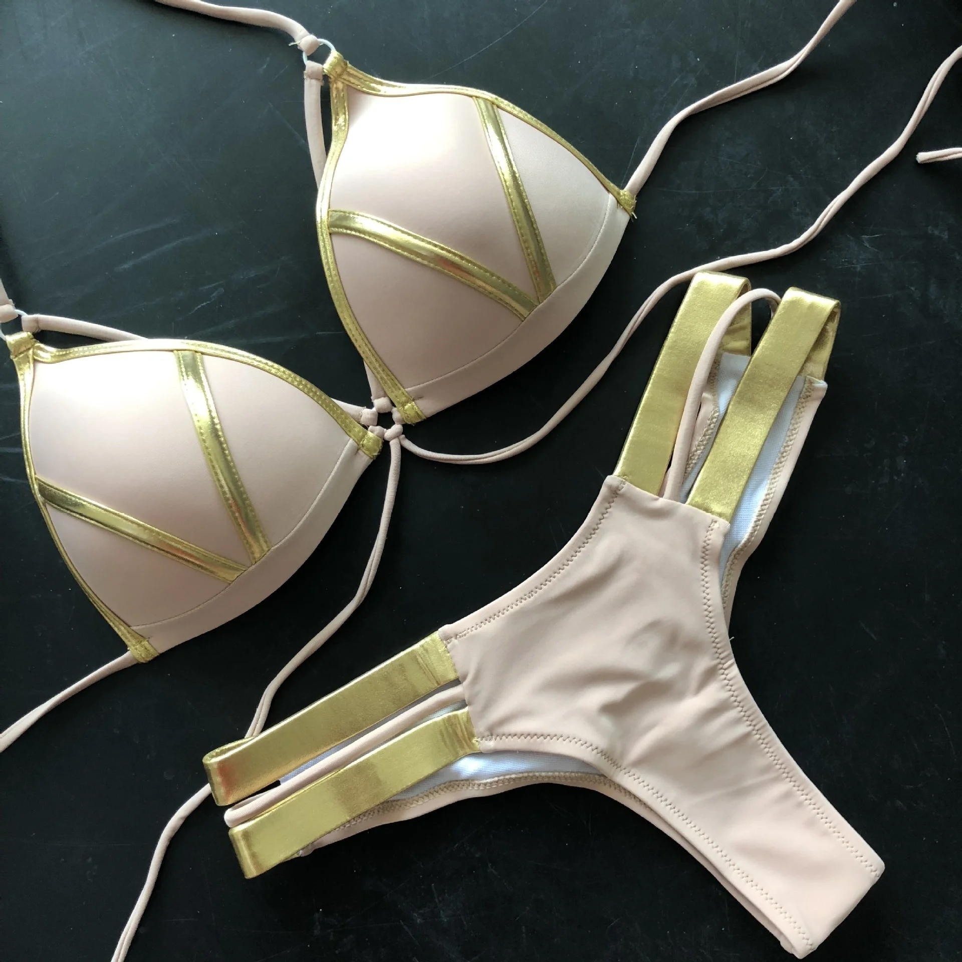 Стринги бикини пуш-ап 2022 сексуальный Bronzing Холтер Купальник же...