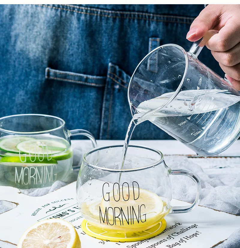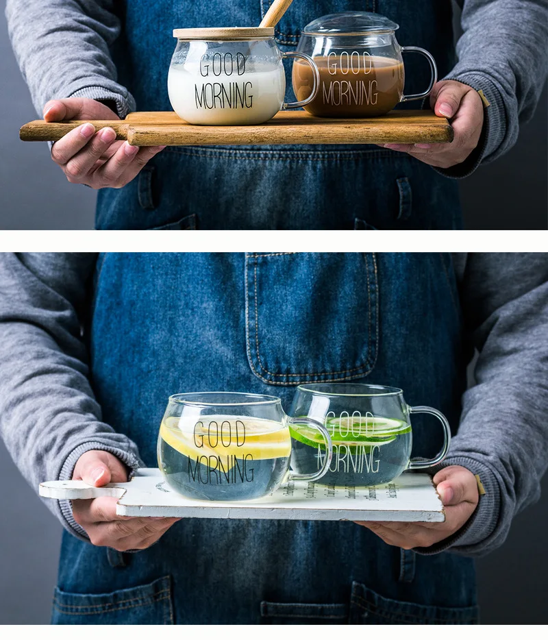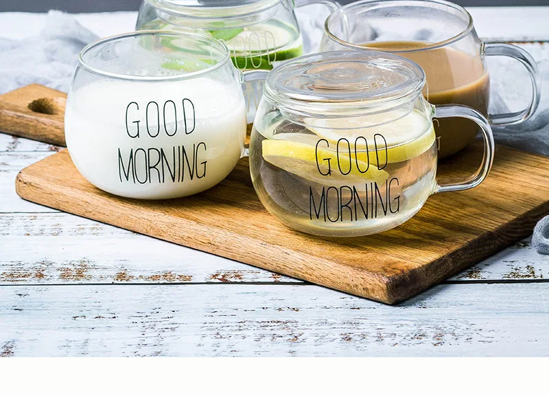 Термостойкое стекло с ручкой, Термокружка, простая кофейная чашка с буквенным принтом, чашки для завтрака, послеобеденного чая, молока, посуда для напитков