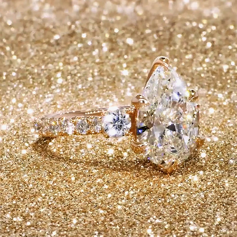 Ювелирные изделия, кольца для женщин, бриллиантовая груша, Муассанит, обручальное кольцо из розового золота, ювелирные изделия для девушек, женские кольца