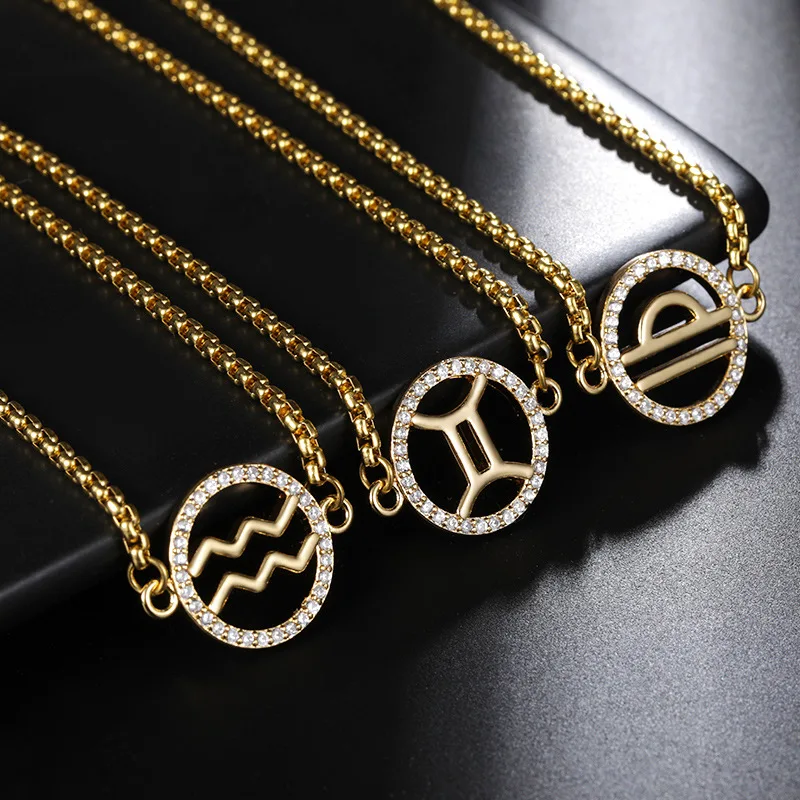 Женское Ожерелье со знаками Зодиака, цепочка из нержавеющей стали с...
