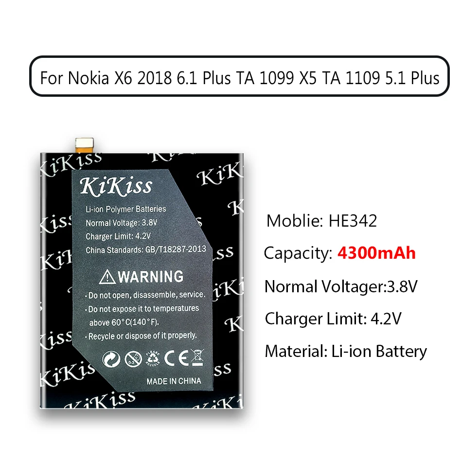Мощная батарея 4300 мАч KiKiss HE 342 HE-342 HE342 для Nokia X6 20185.1 Plus6,1 Plus 2018 TA-1099 X5 TA-1109 батареи + инструмент