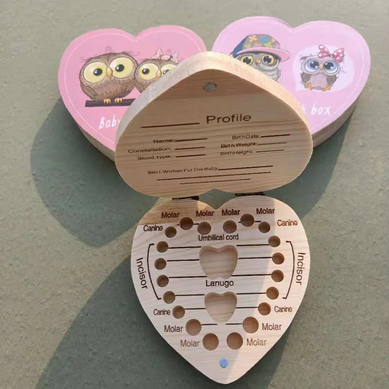 Деревянная коробка для зубов в испанском и английском цветах, органайзер для мальчиков и девочек, хранилище для молока и зубов, собирать зубы, сохранение для новорожденных подарков