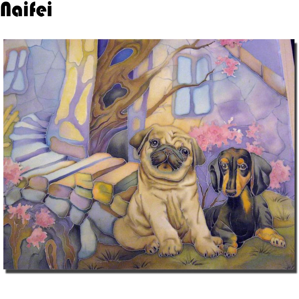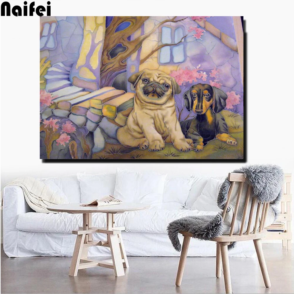 5D алмазная живопись сделай сам, мопс и такса, собака, животные, полная квадратная Круглая Мозаика Ручной работы, вышивка, домашний декор, подарок
