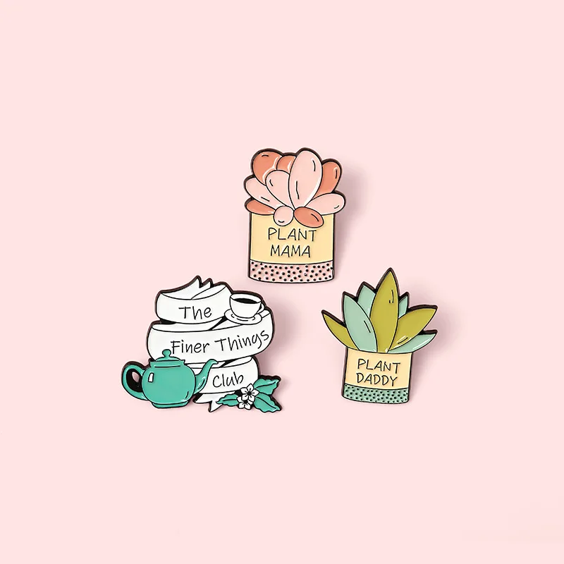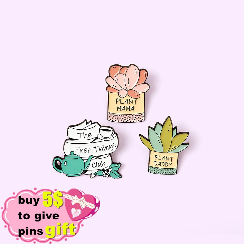 Эмалированная заколка для мам и растений, заколка на лацкан в горшке, значки, брошь в виде чайника, ювелирные изделия для пар, буквы, цитаты, подарки для леди, оптовая продажа