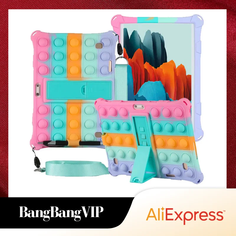 Силиконовый чехол Pop Push Bubble it для планшет 10 дюймов 10,1 дюйма, универсальный держатель, чехол-подставка с плечевым ремнем и стилусом для детей