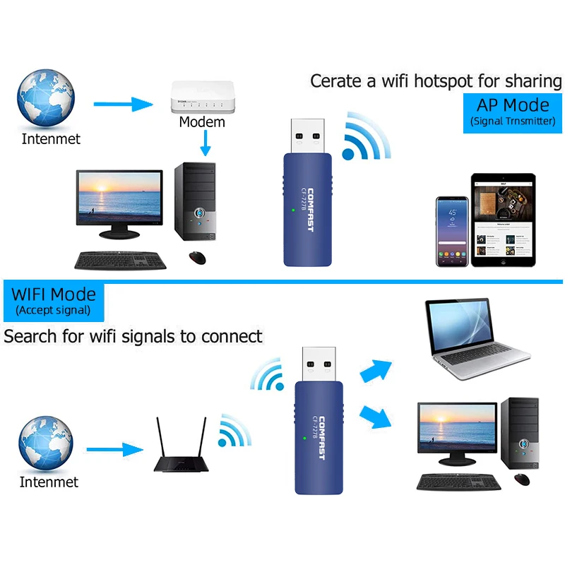 Вай фай lan wifi адаптер для пк usb lan wifi антенна длинный диапазон comfast usb lan адаптер