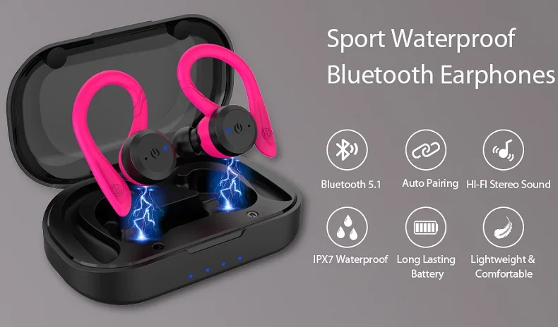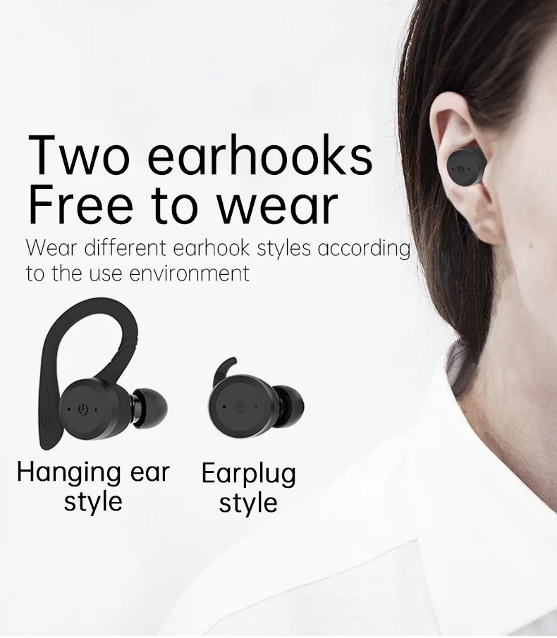 [Спортивный дизайн] Настоящие беспроводные наушники дарят вам свободный от шнура и свободные руки. Надежная посадка, удобная и водонепроницаемая конструкция IPX7 делает наушники идеальными для занятий спортом.